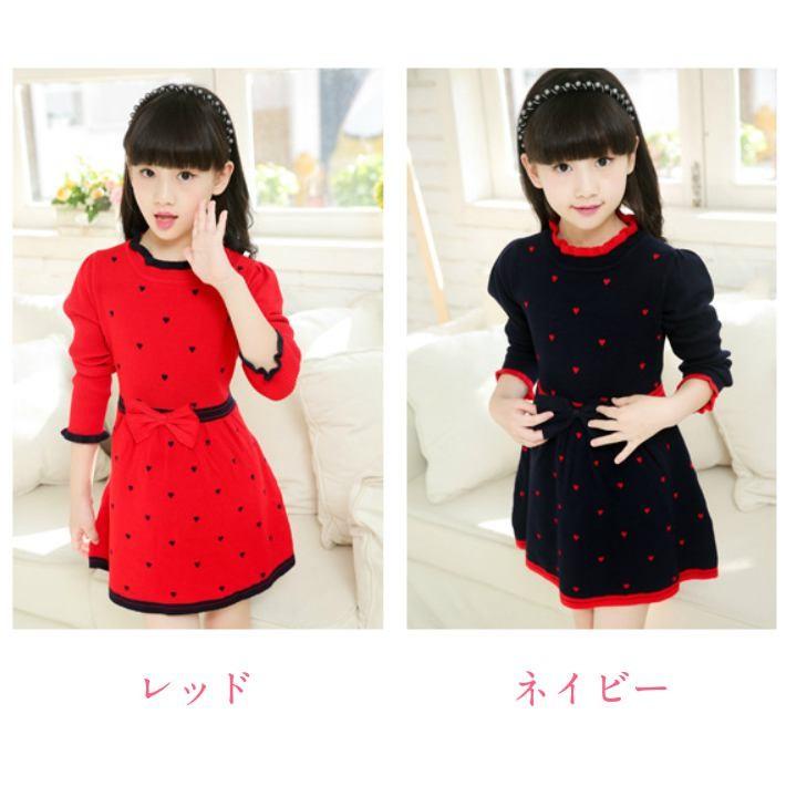 子ども服 ワンピース 女の子ハート柄ニットワンピース キッズ 赤色ワンピース 黒ワンピース フリル付き 冬 秋 春 110 1 130 140 150 160cm Sunflowerkids 通販 Yahoo ショッピング